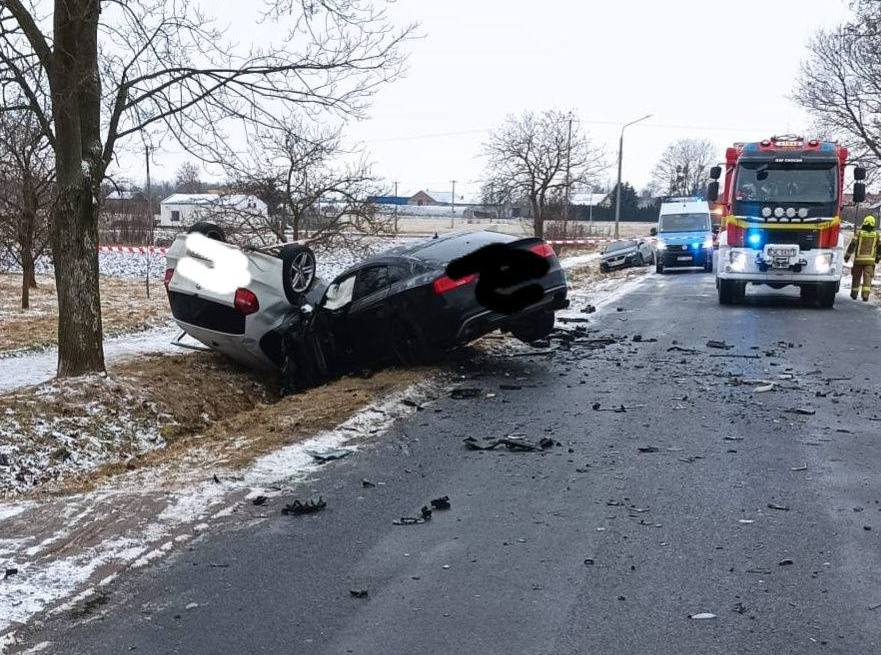W Kodniu zestaw ciężarowy przewożący gaz zsunął się na oblodzonej nawierzchni i uderzył w ogrodzenie jednej z posesji, blokując drogę w obu kierunkach. Na miejscu interweniowała straż pożarna.